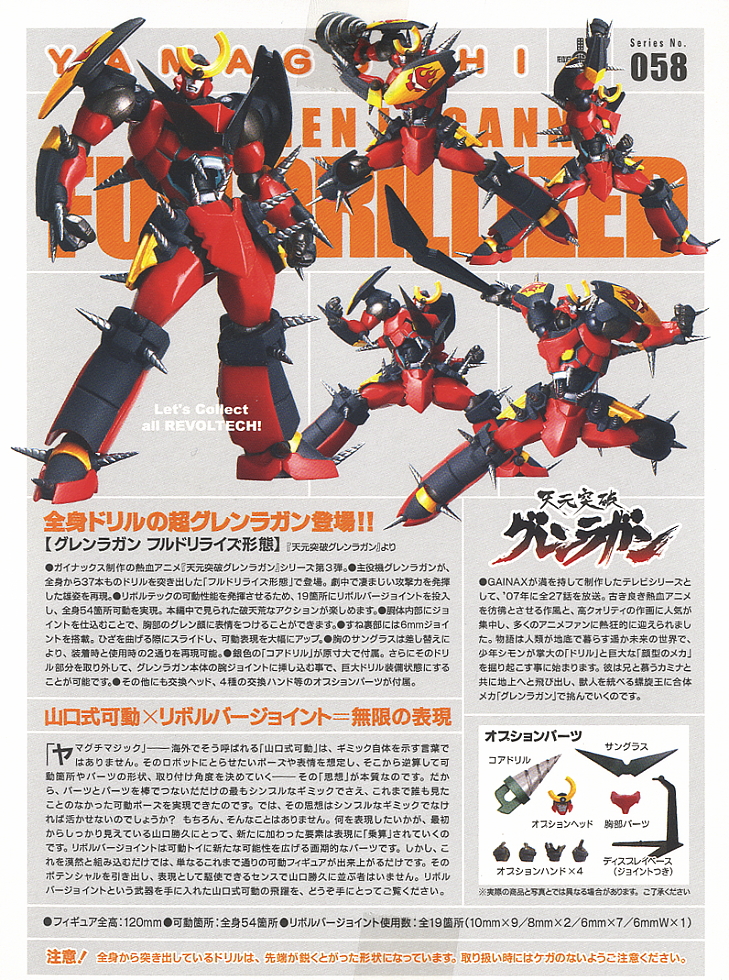 Référence : 58 Série : Tengen Toppa Gurren Lagann [Voir aussi] Date de sortie : 15/08/2008 Prix : 1995¥ Informations sur le modèle/la série
