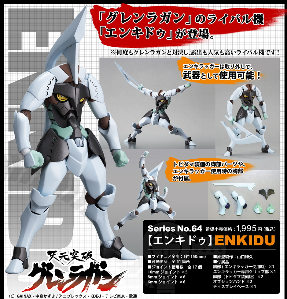 Référence : 64 Série : Tengen Toppa Gurren Lagann [Voir aussi] Date de sortie : 15/11/2008 Prix : 1995¥ Informations sur le modèle/la série
