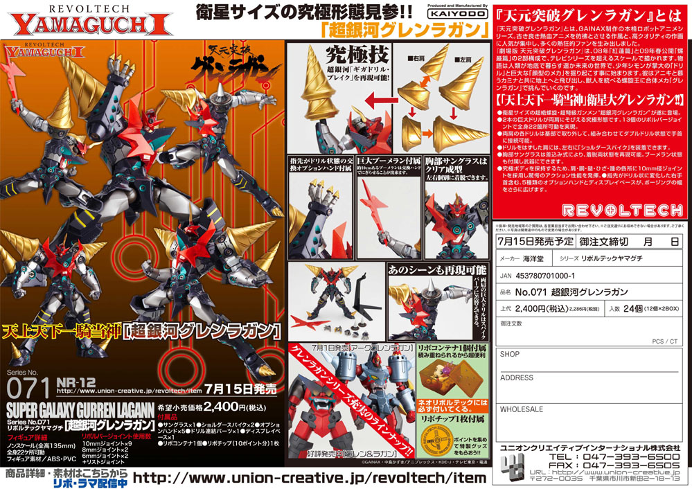 Référence : 71 Série : Tengen Toppa Gurren Lagann [Voir aussi] Date de sortie : 15/07/2009 Prix : 2400¥ Informations sur le modèle/la série