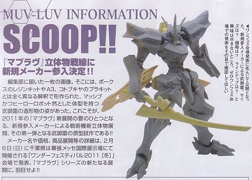 CyberGundam qui présente un nouveau gros robot qui trouvera sa place parmi les Revoltech Yamaguchi. Il s'agit, si je ne dis pas de bêtise (mais comme je ne connais pas, tout est possible) de Takemikaduchi Type-00R, issu de la série Muv Luv - série de jeux sur PC - , que je ne connais pas du tout, même si j'ai déjà vu quelques figurines des personnages féminins sur MFC. Pas de date, pas de prix, pas de couleur, voilà , c'est dit !