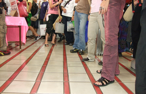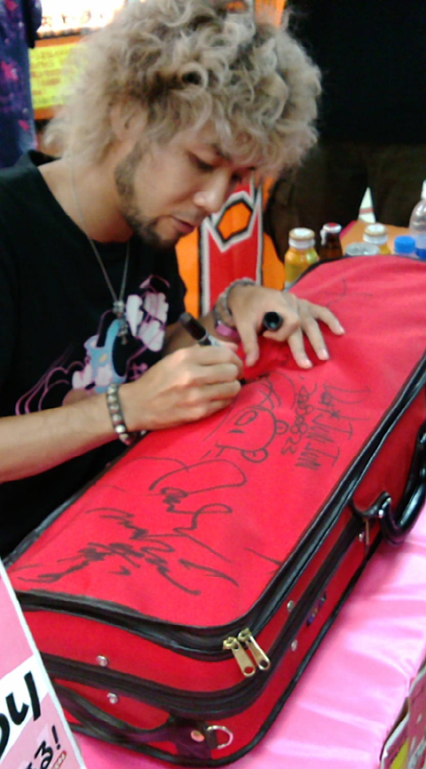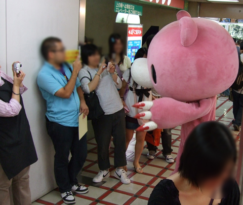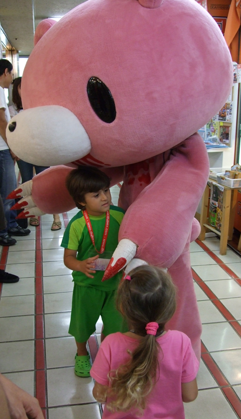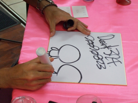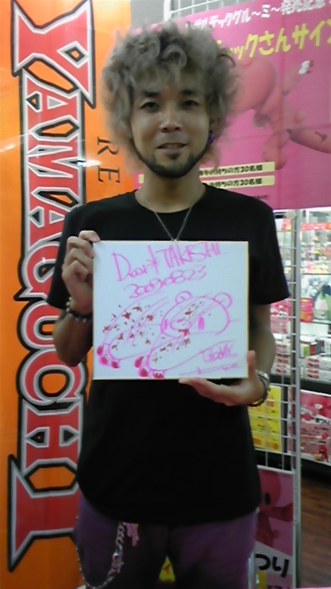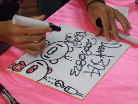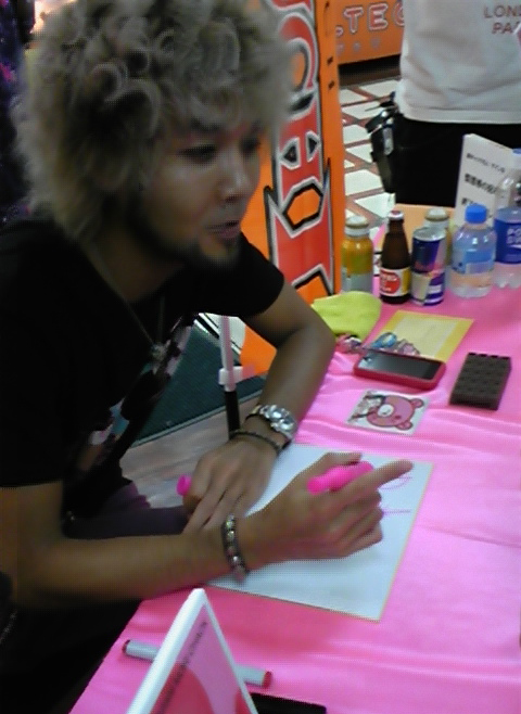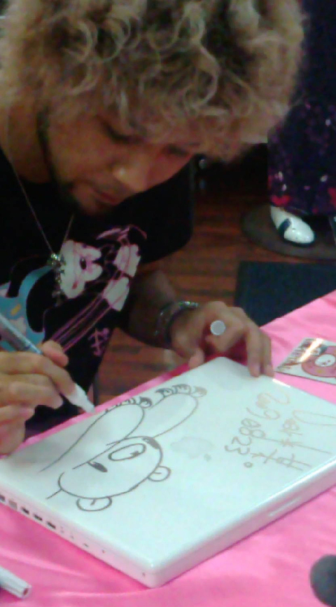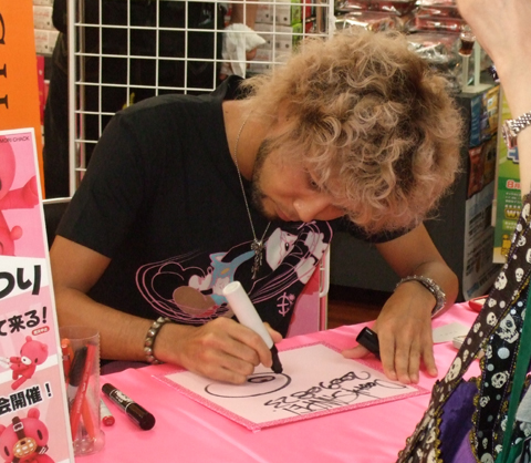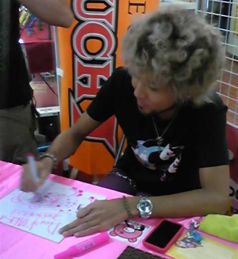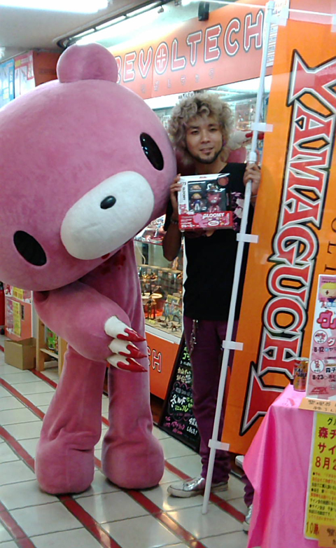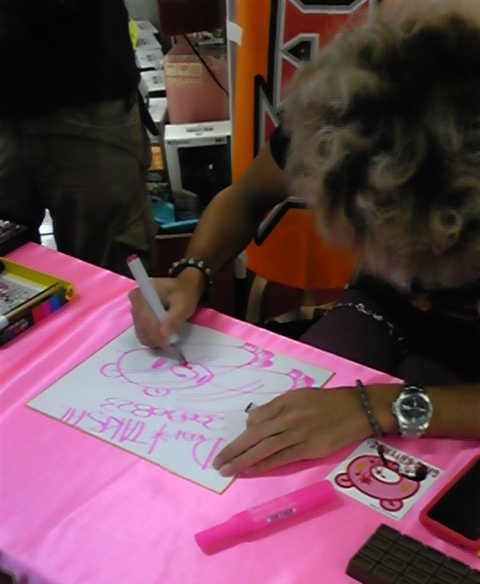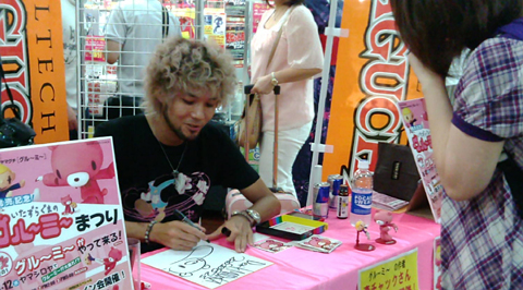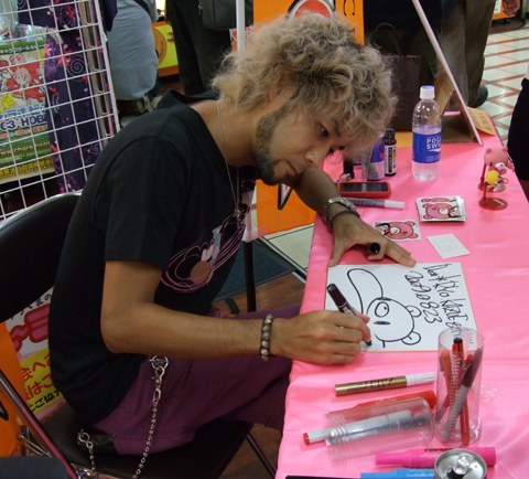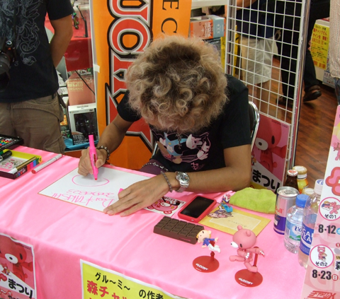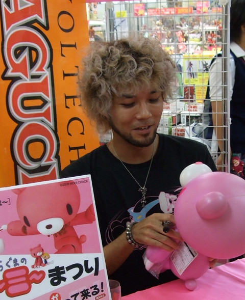 d'Union Creative, prise lors d'une séance de dédicaces par Chax, l'auteur de Gloomy Bear, pour la sortie du Revoltech à l'effigie de son personnage.